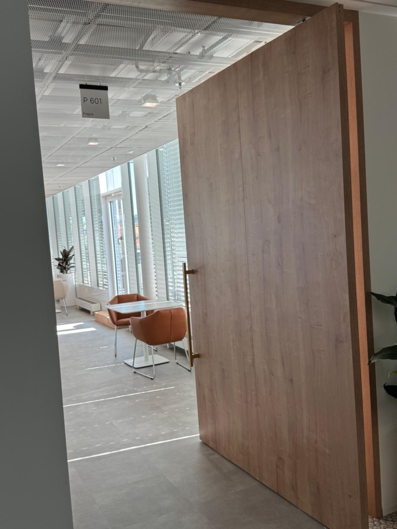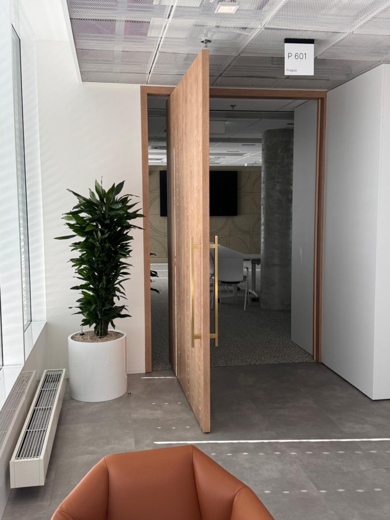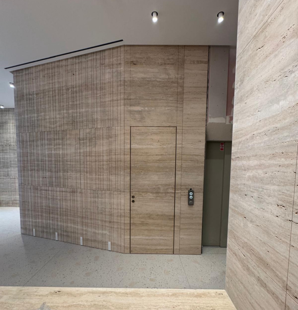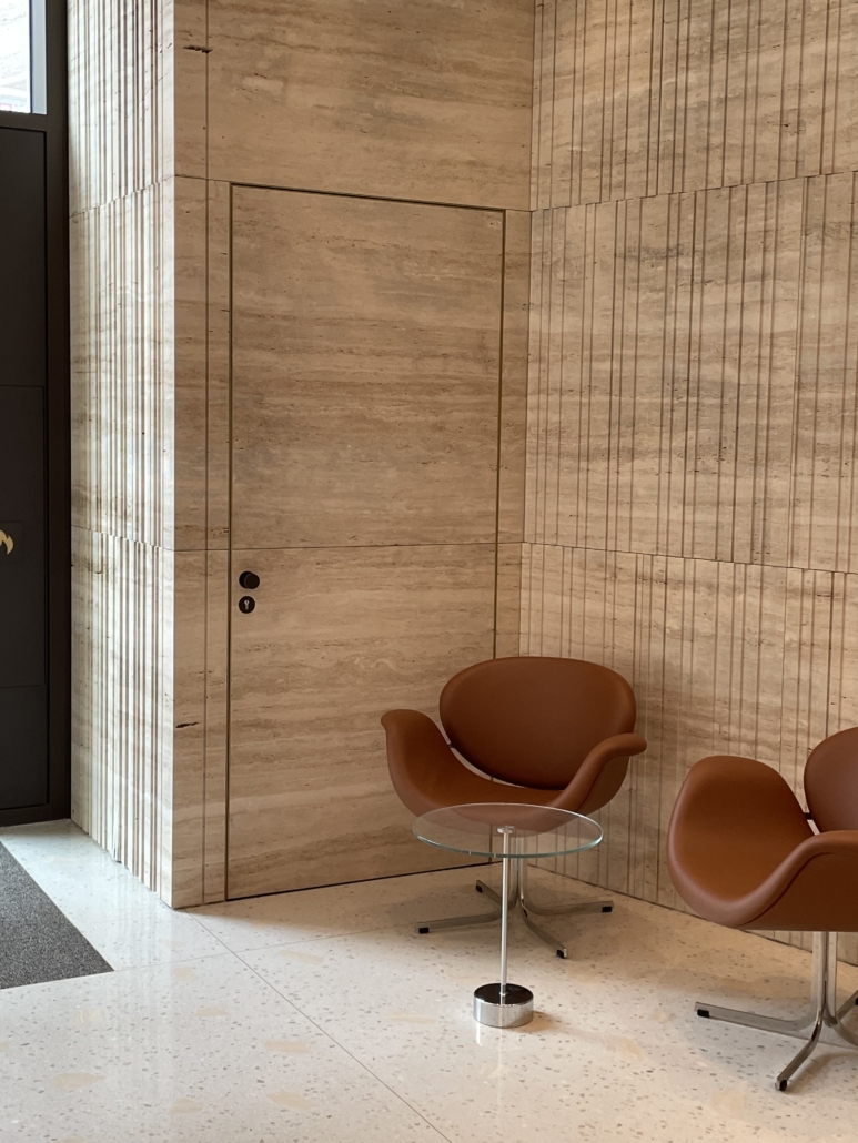 Realizace Pařížská – dveře nesou kámen travertin