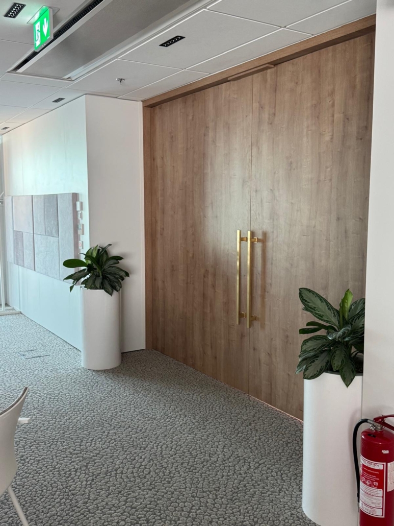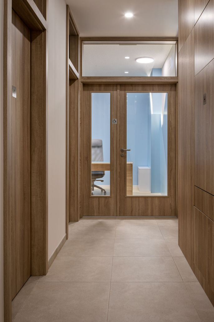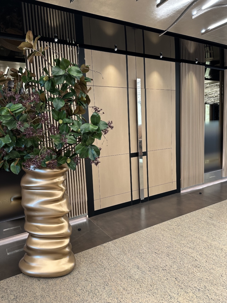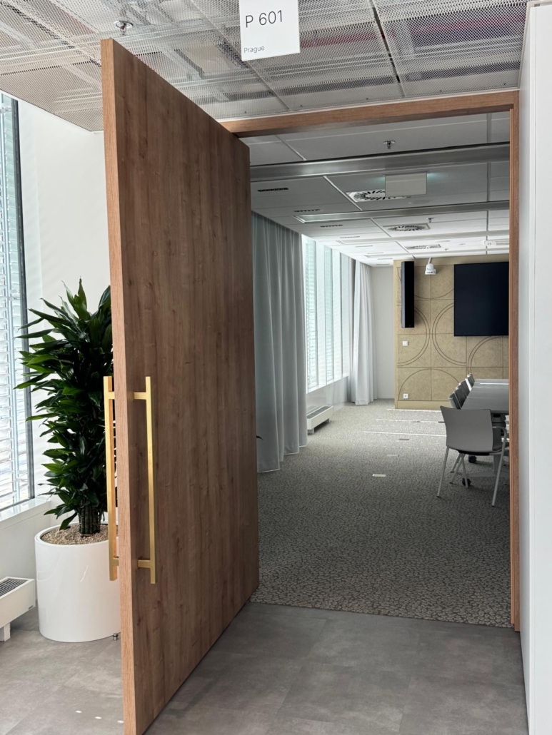 Realizace Pařížská – dveře nesou kámen travertin
